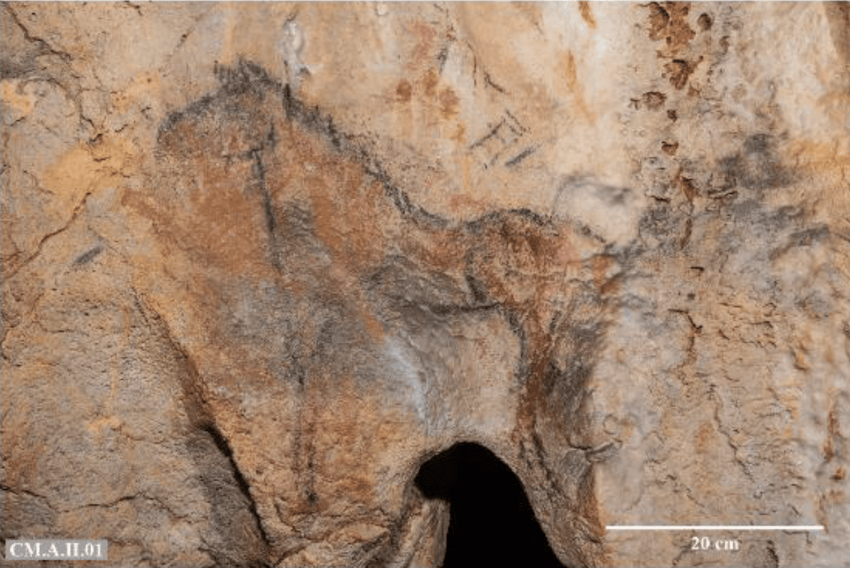 2. Geological Context: The absence of an archaeological site in the cave, together with its opening linked to modern mining (after the 19th century), reinforces the conclusion that the drawings are recent.
